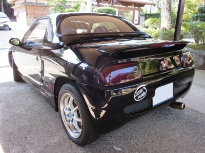 オーディオは、センターコンソールの幅が狭すぎて、市販の1DIN、2DINサイズのものが使えないため(使えるようにするためのコンソールボックスも純正ではないですが売られてはおり、実はストックしてあります)、専用オプションを装着することになります。現在、センターコンソールに収まるスカイサウンドコンポ120W(\85,000)と、左右のドアとインパネに装着されているスピーカーセットのスカイサウンド8SP(\33,000)は、両方とも車を買った時についていたもの。これに6連奏CDチェンジャー(\65,300)を追加しました。ただでさえ狭いトランクは、こいつのせいでティッシュ1箱入れるのがやっとです。 シートベルトには無限のシートベルトパッド(\5,000)を1996年9月に装着。カタログには「安全性を向上させたロングタイプ。胸から肩までを確実に保護します。」とありますが、どちらかと言えばドレスアップ商品です。感触はいいのですが、ロックを外した時にベルトがスルスルと自動で収納できなくなるのが欠点でしょうか。 ペダルはカーメイトのロングセラーRAZO RM35(\4,880※)を1997年6月に装着。足元の空間が狭いため、このでかいペダル同士がくっついてしまい、セッティングには苦労しました。ブレーキとアクセルを同時に踏まないよう慣れが必要です。 ナビゲーションはパイオニアのカロッツェリアAVIC-X10TVを1997年7月に装着。この機種は2台の車に自由に載せ替えができるのがウリなのですが、取り付けキットやアンテナなど本体をのぞく全てを2セットずつ購入することになったので、夏のボーナスは一瞬で消えました。 ハードトップは、どこから発売されているものも高く、必要もないだろうと最初は買う気がなかったのですが、1995年の冬に雪の重みでたわんでいる幌を見て翌年9月に購入を決意。数ある中で唯一リアウィンドウがガラス製(他社のは全てアクリル製で耐久性に不安あり)の無限のハードトップキット(\246,000)を選びました。ガラスの分だけ重いため、取り外しは2人がかりとなります。1999年以降の冬は、新居とともに建てたガレージのおかげで未使用です。このハードトップ、長らく絶版となっており幻のアイテムとなっていましたが、2001年春に無塗装で200セット限定再販されました。 ストラットタワーバーは、GAB(ウィングジャパン)製(\18,000)。1997年11月に車雑誌の懸賞で、全国で2名という高倍率に当選。フロントのボディ剛性を高め、ハンドリングの楽しさを倍増させるというアイテムなのですが、極限の走りをしない自分にはその変化がよくわかりません。まあ、愛車が長持ちすると思えば…。 あとは、純正OPのセンターアームパッド(\3,800)、マップケース(\3,000)を車の購入時に装着。前者は助手席用のようで、ドライバーの肘は全然届きません。後者は収納部の少ないビートには結構便利。また、車購入後まもなく、ウッディなカー用品シリーズ 「Fクラッシック」のウッド風ドリンクホルダー、ウッド風バックミラー(助手席用も)、サングラスクリップ、そして別メーカーのウッドシガーライターを購入。さらにウッドシートを買ってインパネ、エアコン吹出口などをウッド調にし、より統一感を出してみました。ステアリング下部には温度計・湿度計ツインメーターを装着。 (※マークのあるものはカー用品店などでの店頭販売価格。それ以外のものは全て定価で表示。) 今のところこれだけですが、ビートオーナーの方の何かの参考になれば幸いです。いろいろな雑誌やホームページを見ていると、この程度では足元にも及ばないビートがゴロゴロおられるのですが…。 勤め先には、ビートのオーナーが私以外に2人もおられました。W林氏所有のクレタホワイトの無限ローダウンサスキット仕様車(この前はイエローのビートに乗っておられました)と、M澤氏所有の全国限定500台という希少車、キャプティバブルーパールのバージョンC。残念ながらW林氏は1998年に転勤、M澤氏も2001年に転勤されてしまったのですが、M澤氏と入れ替わりに転勤されてきたS本氏は、またもやビートオーナー。何という偶然(念のため私の勤め先がホンダ関係というわけではありません)。S本氏のビートの色は赤、HKS製のマフラーを装着した気合いの入ったビートです。W林氏いわく「無限のローダウンサスは固すぎ。カタログにはノーマルの乗り心地そのままに、とか書いてあるけど、車がはねまくって運転しながら酔いそう。」とのことでしたが、その後なじんできたらちょっと改善したようです。しかし、ビートは(というか日本車は)、タイヤとボディーの隙間が広すぎてカッコ悪いので、やはり車高を下げたくなるのは当然の心理。ノーマルサスのマイカーより、W林ビートの車高は2cm程下がっています。 このW林ビートは2001年6月、車検時に無限製のエキゾーストマニホールドとブレーキパッドを装着し、さらに2004年、ヨットなどに使われるレザーを使って純正シートの張り替えを実行。タイプR風に真っ赤になりました。 ※このS本氏で