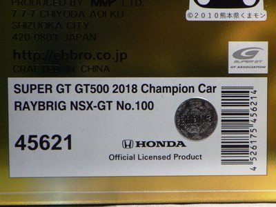 | No.45628 RAYBRIG NSX-GT No.100 SUPER GT GT500 2018 \9,680税込・\8,800税別 | |