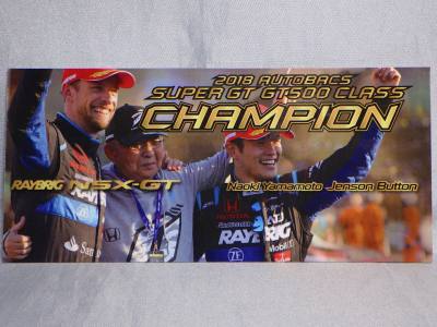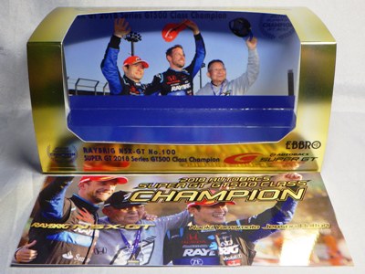 | 2016年11月21日にレイブリック・チーム国光から、Rd.6 SUGO仕様が優勝記念パッケージとしてAUTOSPORT web SHOPにて22日の正午から販売開始となる旨の発表があった。1年前から発売がアナウンスされていた通常品となる「Rd.1岡山」仕様は11月18日に発売され、こちらは限定の背景が付属するが、岡山仕様は通常のチェック模様となる。台座も、こちらは「Rd.6」「Winner」といった文字こそ入っていないものの、岡山仕様にあった「Rd.1 Okayama」という文字は消されている。ミニカー自体は全く同じ。限定数は不明。即完売した模様で、25日にはSHOPサイトから商品が消えていた。 | |