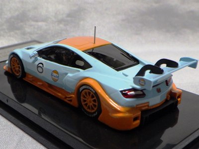 バグジーズ1/64コピー品9種のうち未入手だった2種のうち、Gulf仕様を2020年12月ヤフオクで入手。 ヤフオクでの初登場の2018年12月18日から2年が経過し、安くなっていたので落札したのだが、パッケージから出すとクリアケースが見事に割れていた。商品説明には一切ダメージについての記載はなかったのだが、「ノークレーム・ノーリターンで」の文字はしっかりあり、面倒なので評価はダメージに触れず「大変よい」にしておいた。 出品者もパッケージの中のダメージにまで気がつかなかったのかもしれないし、運が悪かったということで…。 Gulf仕様は2019年10月24日にTSMのMINI-GTブランドからも発売されているが、今回入手の商品はベースがNSX-GTコンセプトプトということもあり、形状はもちろんカラーリングも結構異なる。 (比較画像を下に掲載) ちなみにGulf仕様のNC1の実車は海外のレースシーンにも存在しない。あくまで想像上のモデルである。 NA1のGulf仕様は海外のプライベートカーとしては存在しているようで、ネット上で画像を見ることができる。 |