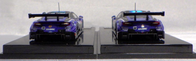 | 2015年9月末から発売延期を繰り返していた1/64GTモデル5種のうち「BG523A ウィダーモデューロNSXコンセプトGT2014」「BG524A エプソンNSXコンセプトGT2014」が2017年7月1日についに発売。バグジーズブランドとしては何と7年ぶりの新作。あまりにも間が開いたため、ショップの方に混乱があり、キャンセル者の確認など対応に追われたようで、届いたのは7月22日であった。残りの3種は7月20日発売。 | |||