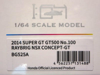 | 2015年9月末から発売延期を繰り返していた1/64GTモデル5種のうち「BG523A ウィダーモデューロNSXコンセプトGT2014」「BG524A エプソンNSXコンセプトGT2014」が2017年7月1日に発売。続けて「BG521A ARTA NSXコンセプトGT2014」「BG522A ケイヒンNSXコンセプトGT2014」「BG525A レイブリックNSXコンセプトGT2014」が7月20日に発売。 | |||