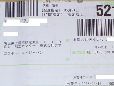 2023年10月12日に出荷され、配達指定日の10月15日に到着。