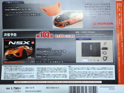 | 1/8 DEAGOSTINI(デアゴスティーニ)週刊Honda NSX(NC1)全国版 第103〜107号エコパッケージ版/各\1,790税込(\1,627+税) | |