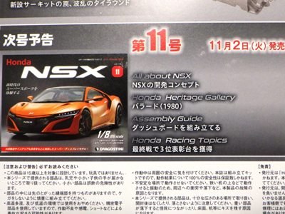 | 1/8 DEAGOSTINI(デアゴスティーニ)週刊Honda NSX(NC1)全国版 第43〜46号エコパッケージ版/各\1,790税込(\1,627+税) | |