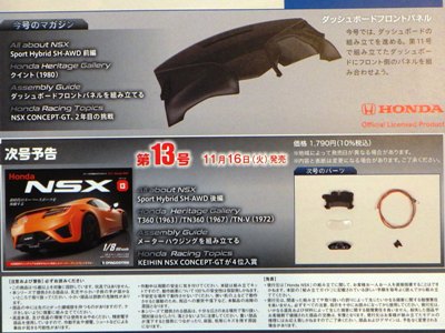 | 1/8 DEAGOSTINI(デアゴスティーニ)週刊Honda NSX(NC1)全国版 第12・13号エコパッケージ版/各\1,790税込(\1,627+税) | |