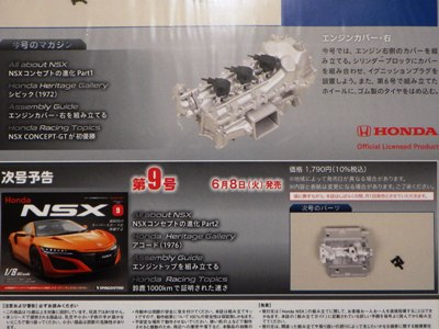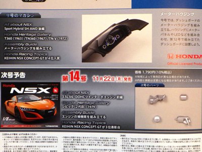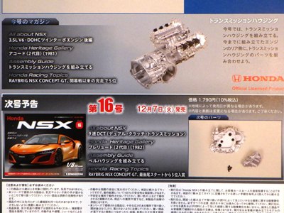 | 1/8 DEAGOSTINI(デアゴスティーニ)週刊Honda NSX(NC1)全国版 第14・15号エコパッケージ版/各\1,790税込(\1,627+税) | |