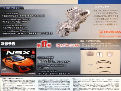 、後日書店の通販で購入)。 15号までの定期購読特典のオリジナルスペックプレート&ツールボックスも同梱。 第15号(12月14日号)の本来の発売日は11月30日(火)。 第16号(12月21日号)の本来の発売日は12月7日(火)。 パーツの内容は15号がトランスミッションハウジング、16号はベルハウジング 。 |