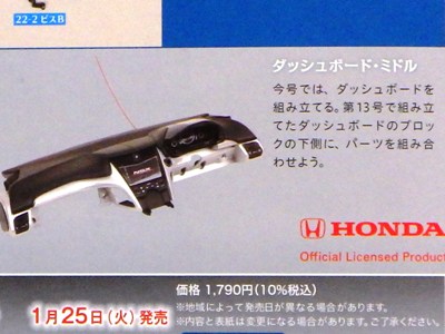 定期購読分が全国版も試験販売版もエコパッケージになってしまったため、2021年12月22日に、入手できなくなった通常パッケージ版の12〜14号、17〜20号をヤフーショッピングで書店に注文。 2022年1月7日に到着。 第12号全国版の本来の発売日は11月9日(火)。 パーツの内容はダッシュボードフロントパネル。 |