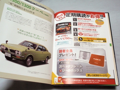 試験販売版には「歴代NSXハイクラスモデルカーコレクション」の宣伝ページがない。 |
