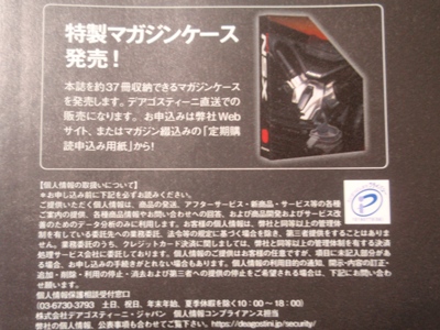 | 1/8 DEAGOSTINI(デアゴスティーニ)週刊Honda NSX(NC1)全国版 マガジンケース/\1,989税込(\1,808+税) | |