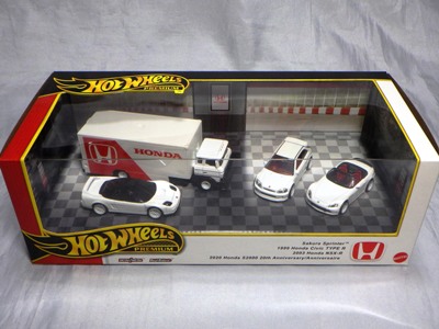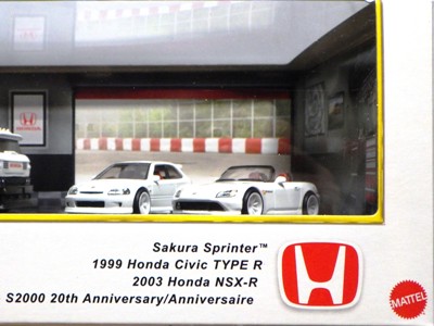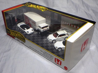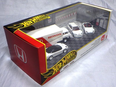 HOTWHEELS(マテル) 1968年にアメリカ・マテル社のミニチュアカー部門として設立され、独自の世界観を構築しているブランド。日本車もその豊富なラインナップの中に多く含まれますが、2007年末にホワイトパールの派手なアキュラNSXがラインナップに加わるまで、NSXが取り上げられたことは一度もありませんでした。では、なぜ2005年にこのコーナーを作ったかというと、レギュラーモデルの1種である「2005ファーストエディション」のNo.10として、次期NSXのコンセプトモデルと称され、2003年の東京モーターショーでデビューした「アキュラHSCコンセプト」が2005年7月にそのラインナップに加わったため。ちなみにHSCという名称は「ホンダスポーツコンセプト」の略。NSXを正常進化させたデザインです。 基本的にアメリカでブリスターパック入りで販売され、その後、カードの裏面に日本語のステッカーを貼ったり、日本語のカードを新たに製作したものが正規輸入品として日本に入ってきます。アメリカでは何台かをまとめて箱入りで売られているものもあります。ショップやコレクター個人が並行輸入してアメリカ版のパッケージのまま流通している商品も多いです。ショートカードと呼ばれる縦が短いカードは、基本的にヨーロッパで販売されているものらしいです。 |