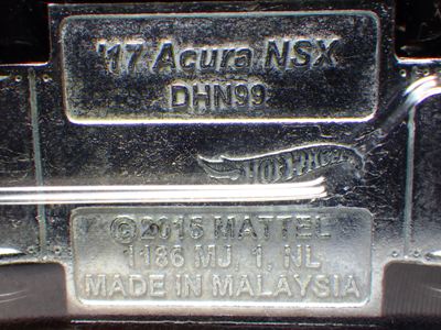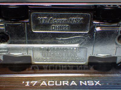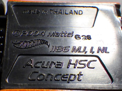 | 2017年2月8日にヤフオクに登場したパッケージなしのルース品を落札。ヤフオクで毎日欠かさずチェックしているNSXと違い、HSCは長い間、全くのノーチェックだったので、いつ頃発売されたのか、どのようなパッケージに入って販売された商品なのかは全く分からない。ただ、モデル裏板の刻印は「E50」 となっていることから、アルファベットは発売年、数字はその年の週を表しており、2008年が「A」、2009年が「B」…となっているらしいので、「E50」は2012年の50週目、つまり12月の中旬に製造されたことを表していると見てよい。ちなみに、このアルファベットのルールは「H」で表される2015年まで続いたのだが、なぜか「I」が飛ばされて、2016年モデルは「J」で表現されている。数字の「1」と見分けが付きにくいからであろうか。 |