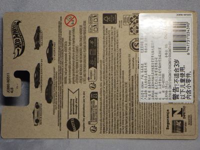 2017年8月29日にヤフオクで海外からの出品を確認。9月26日に国内からの出品を確認し、国内での正規販売前ながら、10月に入って相場が下がったところで購入。 リアのナンバープレートにホットウィールのロゴが入るが、あまり鮮明ではない。 カード裏の刻印は「1987N」、ミニカー裏板の刻印は「K29」。 |