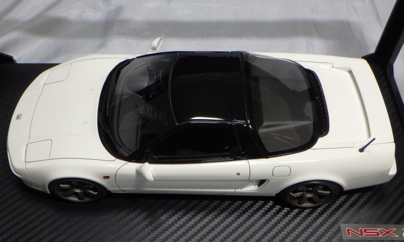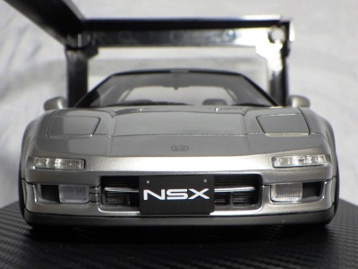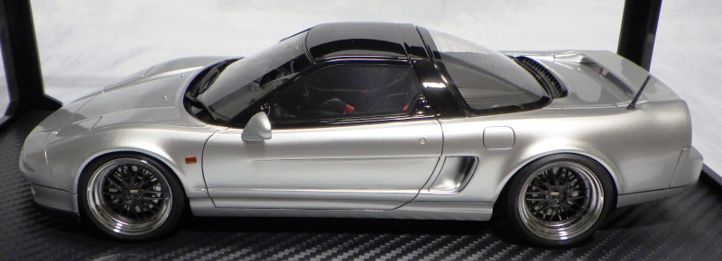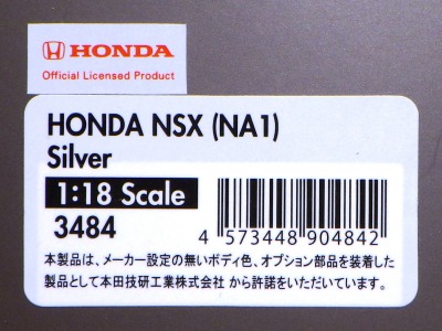 当初NSXのモデルは、2016年4月に400レッド、405ブラック、5月に402シルバー、403ホワイト、6月に401レッド、404ホワイトを発売することを発表していたが、7月29日にやっと402シルバー、403ホワイトの2種が発売された。 1/18のカスタムNSXと言えば、2003年から2004年にかけてFUNLINEがマッスルマシーンシリーズで派手なストリートチューニングカーをリリースしていたが、このシリーズはライトでシックなドレスアップがポイントとなっている。 実際近年オートアートや京商の1/18モデルを個人がカスタムしたものがヤフオクに数多く出品されて人気があり、目の付け所はなかなかである。 前述したマッスルマシーンは玩具的な色合いが強かったが、本シリーズは開閉ギミックを一切廃し、プロポーション重視としており、それだけに非常にハイクオリティーで、芸術的な仕上がりである。カスタムカーにありがちな下品さがなく、むしろノーマルに負けない上品な雰囲気を醸し出している。生産台数160台。 |