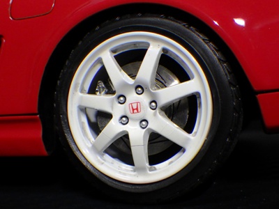 2024年5月28日にレッドとホワイトの2種、6月28日にシルバーとレッドの2種の受注が開始され、2024年11月15日に4種同時に発売された。これは、5月に受注が開始されたホワイトモデル。 ボディカラー以外の先の2種との違いは、先の2種がBBSのRG-RとLMであったのに対し、こちらはBBS同様の大定番のレイズVOLK RACING TE37を装着している点。 これは結構真剣に購入を考えていた時期があったホイール。ホイール以外は先の2種と仕様は同じようである。 |