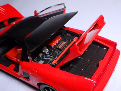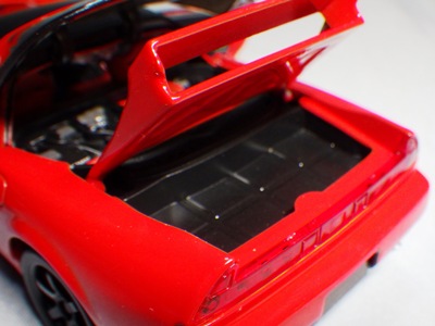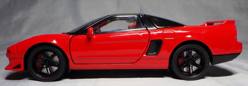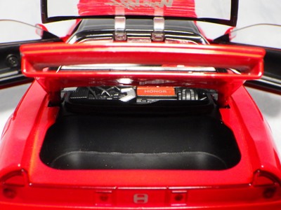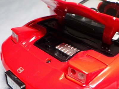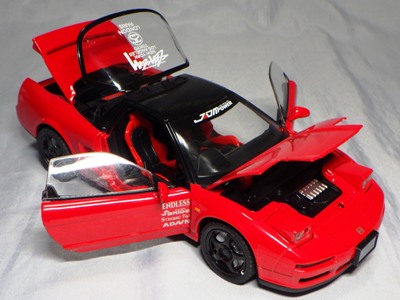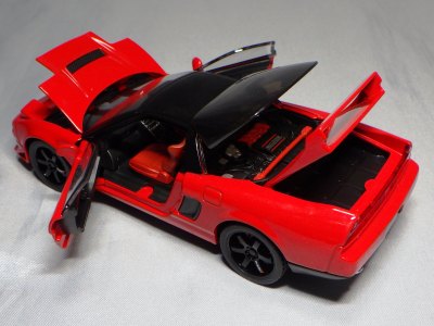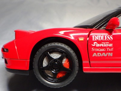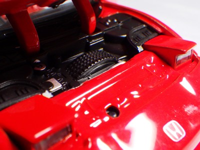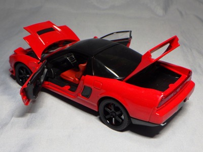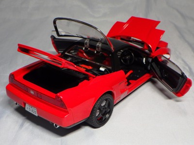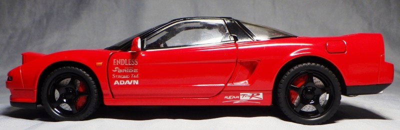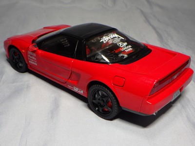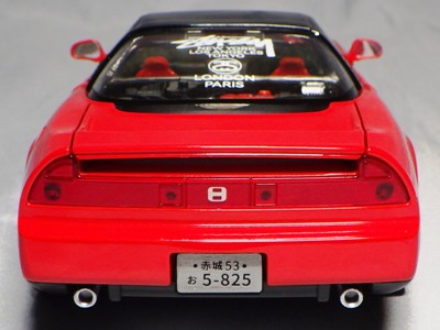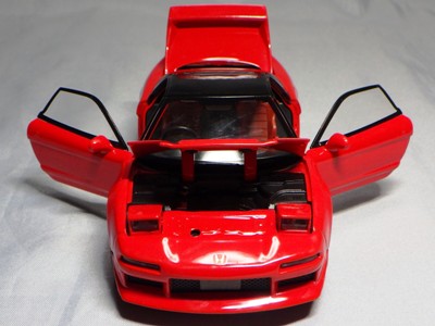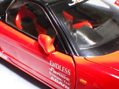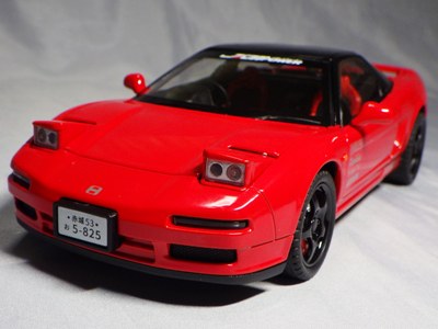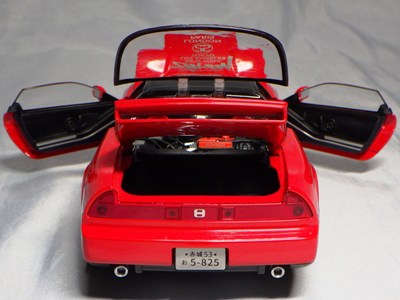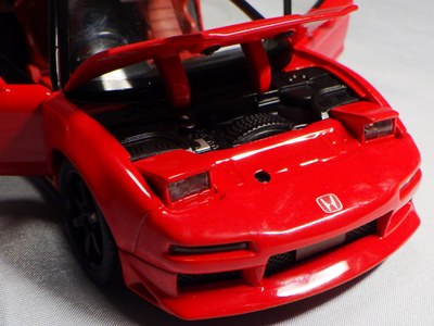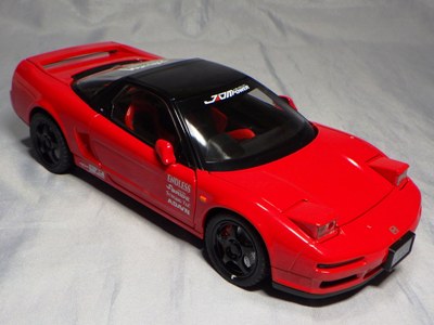 2019年9月18日にヤフオク初登場。その日のうちに即決落札し、10月21日にやっと届く。 500台の限定品で台座にシリアルナンバーが入る。 3Dスキャンによる技術で製作されたリアルな最新ミニカーを見慣れた目には、あまりにゆるいディテールに驚かされるが、それはそれで味わいがある。 キャノピー部やリア周りはよくできているが、ボディは上下にやや厚みがあり、サイドダクトもやや小さい。ノーズも短く、全体的にずんぐりむっくりな印象。 キャノピーが取り外せたので(単なる破損か?)内部も撮影できた。 ホンダのエンブレムが付いているが、アキュラ同様左ハンドル仕様になっている。これは、ヨーロッパでは日本と同じ右ハンドル・左走行なのはイギリスだけで、フランスもそれにならっており、アキュラのディーラーがフランスには存在しないためである。 (アキュラブランドが展開されている国は、アメリカ・カナダ・メキシコ・中国・ブラジルのみで、ロシアにも2014年に進出したが2016年に撤退している。) ワイパー、ホイール、マフラーは金属パーツを使用している 。台座はドイツを代表する1/87ミニカーメーカーのヘルパのものが使用されている。 |