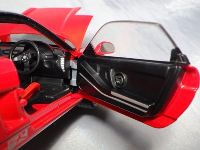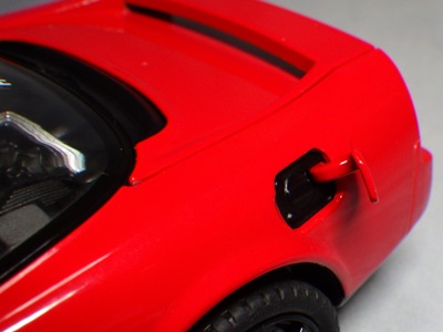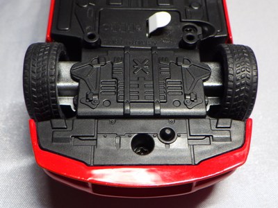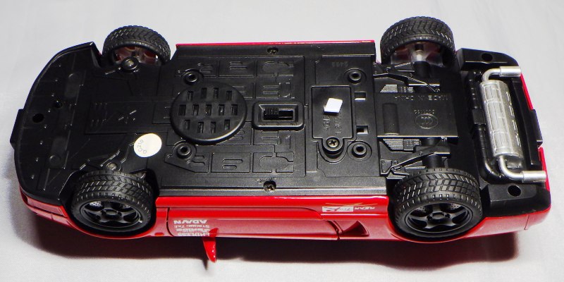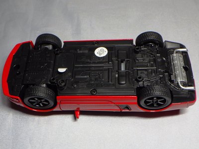2019年3月20日にトイザらスで購入。 「モーターライズド・タッチ・コントロール」シリーズと同様に、MSZ VROOM TECH製のボディを使用して音声を発することを特徴とした商品。 トイザらスが輸入して販売しているもので、パッケージの底面にその旨を記したシールが貼られている。 パッケージ正面には1/30とプリントされているが、底面のシールには1/32という正確な縮尺が記されている。 「モーターライズド・タッチ・コントロール」シリーズとの違いは、この商品には内装が再現されており、ドアとトランクが開閉する点。ボンネットを押すと(正確にはボディのフロント部分を沈み込ませると)エンジンがかかってから急発進するまでの音が鳴りライト点灯。ドアを開けるとクラクション音とセキュリティ警報音(?)が交互に鳴りライト点灯。ライトは前後のみならずインパネも点灯する。 ブルーの方は、客の子供がいたずらしたのか、電池のストッパーが抜かれステアリングが欠品でしたが気にしないことにする。 |