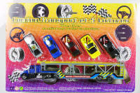 | 2004年9月フランスのコレクターより入手。付属する5台のトミカサイズのチープカーのうち青い車がNSX。ボンネットに「SUPER BALL」のタンポ。中国製。見かけない型。右の画像はトランスポーターの色違いで未入手品。 |