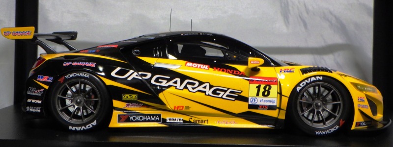 2018年11月29日発売。2016年バージョンがアキュラ仕様であったのに対し、2018年バージョンはホンダ仕様になっているが、なぜか左ハンドルである。フルカーボンのボディは迫力があって実に格好いい。 元々2018年4月発売予定だったものが、1か月単位で発売延期が続き、半年以上経ってやっと発売となった。11月18日にヤフオクに初登場したが、Amazonでの発売日は11月29日となっており、2月に注文してあった商品は11月30日に届いた。 2016年バージョンと異なり、ガラスは濃いスモークではないが、内装が見にくいのは同じ。 アンダーパネルはフラットで、2016年バージョンと異なり、助手席下部にシリアルナンバープレートらしきものが見えるが、車高が低すぎて、薄い鏡を差し入れても番号が確認できない。 |