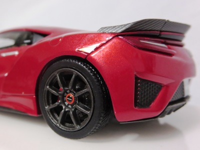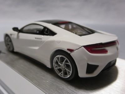 2016年8月25日、新型NSX国内発表に合わせて公式ウェア&グッズオンラインショップにて発売。当日注文(1人1台までの制限あり)して30日に届く。サンリッチ社TSM-MODELが、2015年8月23日に発売した「ジュネーブ国際モーターショー2015」をベースとしているが、市販バージョンへ変更するにあたって大幅に改良されている。 具体的には、モデル化が初となるカーボンのオプションパッケージ仕様となっており、ルーフ、リアスポーラー、その他各所がカーボン仕様になっている。ジュネーブ国際モーターショーモデルはアキュラではなくホンダ仕様だったとはいえ左ハンドルだったため、ダッシュボードは完全新規となっている。ステアリングの位置のみならずダッシュボードのデザインも若干変更されている。ボンネットのダクトは小型化され、ホイールやノーズのシルバーのパーツ形状、ドアミラーの支柱のカラーも変更されている。またナンバープレート(マスコットプレート)、ハイマウントストップランプ、ドアのキーホールが追加されている。 ■サイズ:本体=約103(車長)×53(車幅)×29(車高)mm (ドアミラー含む) :ケース=約160(縦)×88(幅)×80(高さ)mm(台座含む) ■素材:ボディ=亜鉛合金/ABS、タイヤ=TPR ■パッケージ:Hondaオリジナルパッケージ入り ■対象年令:15歳以上 ■中国製 |