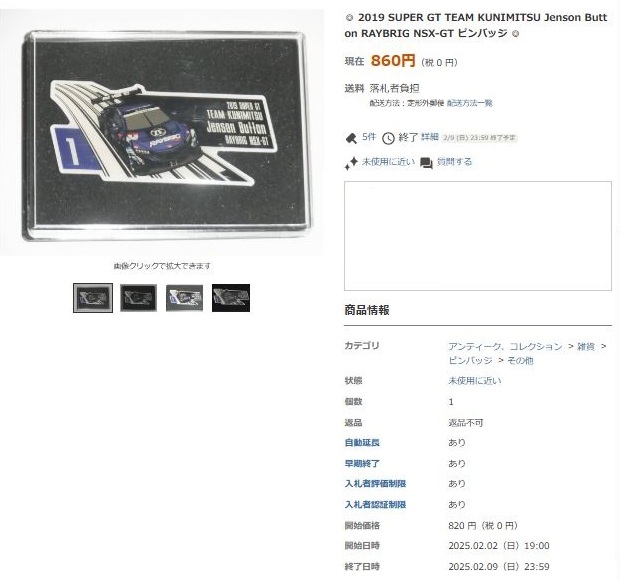▲「レイブリックMSX-GT2019ピンズ」は2024年9月7日にヤフオクに再登場したが、