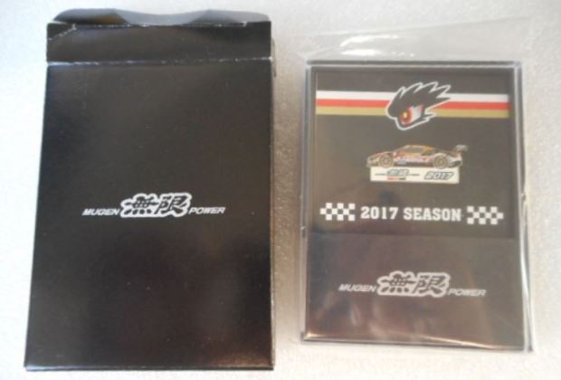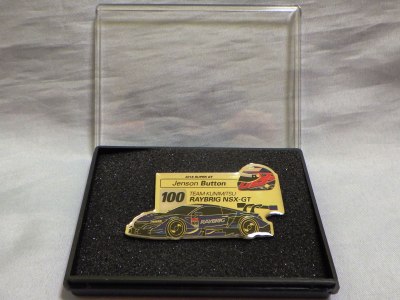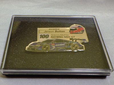 プレミアムファンシートの抽選賞品のARTA NSX-GT&野尻智紀選手ピンズ。 2023年2月6日にはKEIHIN NSX-GT&小暮卓史選手ピンズも初登場し落札。 レイブリックのジェンソン・バトン選手とMOTUL無限の武藤英紀選手の2種も落札には失敗したが、ヤフオクで存在を確認。 おそらく5チーム10選手すべてのピンズが製作されていると考えられ、この4種ほかに、ARTAの伊沢卓史選手、MOTUL無限の中嶋大祐選手、KEIHINの塚越広大選手、Epson Moduloのベルトラン・バゲット選手と松浦孝亮選手、レイブリックの山本尚貴選手の6種も存在するはずと予想していたが、2024年1月24日にARTA NSX-GT&伊沢卓史選手ピンズとレイブリックNSX-GT&山本尚貴選手ピンズのセットが出品され落札に成功。 ケースのサイズは6.0×9.0cm、ピンズのサイズは3.5×6.0cmとピンズとしては大型 。 |