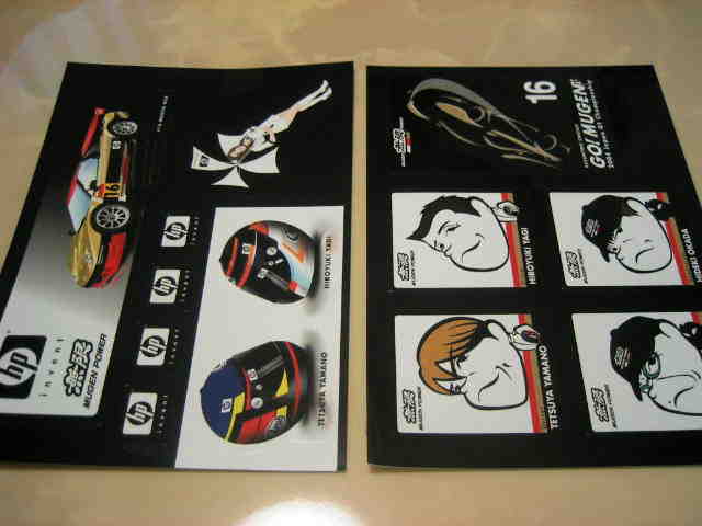 | ヤフオクにて購入。10p×14.7p。F1、INDY、NSX-GT、F3の各ステッカーが、大1枚、小2枚ずつ入っている。サーキットで配付されたもの。 | |