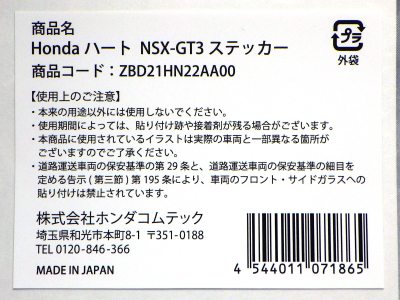 | HondaハートNSX-GT3ステッカー/ホンダコムテック/税込各\550 | |
