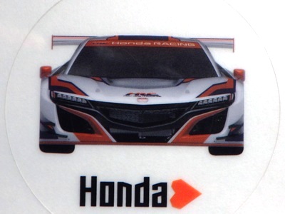 2019年5月スーパーGT第3戦鈴鹿にて、スーパーGTオフィシャルショップのブースにて購入。 前シーズンの売れ残りを販売しており(ただし定価の税込300円のまま)新シーズンのものはまだできていないようであった。 GT500クラス参戦車両の全てのステッカーが製作販売されているが、ブースではNSX5種のうちARTAのみ完売しており(オフィシャルサイトでは2019年6月現在全種購入可)残りの4種を購入。 後日オフィシャルサイトでARTAを購入。 1枚300円。サイズは直径9.5cm。 |