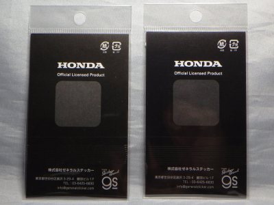 2018年2月にヤフオクで購入。 2017年10月24日にヤフオクに初登場した福岡県のN氏製作のステッカーで、反転印刷された内貼式。 サイズは22×57mm。 素材はラミネート加工された塩ビ製で、屋外耐候年数は3〜5年とのこと。 N氏はホンダ車以外にも様々なメーカーの車種のステッカーを出品している。 新型(h018)と初代(h031)の両方を各520円(各2枚セット)で購入したが、登場時からずっと変わらなかった価格が、自分の購入直後に494円に値下げされ、ちょっと残念。 |