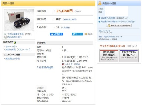 ベースとした再塗装品。開始価格100円で終了日は1月19日だったが結果は未確認。