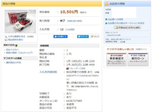 ▲2020年1月19日に石川県から出品され、1月26日に落札された