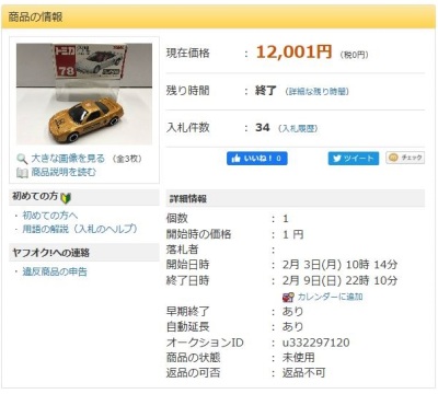 実は入札はしていないのだが、トミカリミテッドベースの2次加工品は珍しい。