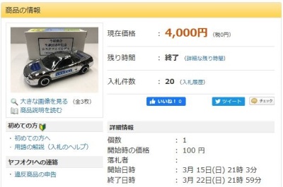 ▲2017年4月21日にヤフオクに出品された、トミカリミテッドベースの2次加工品。