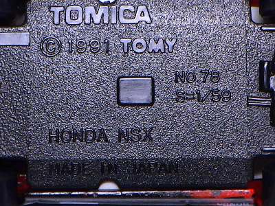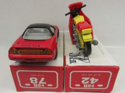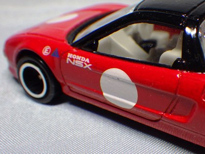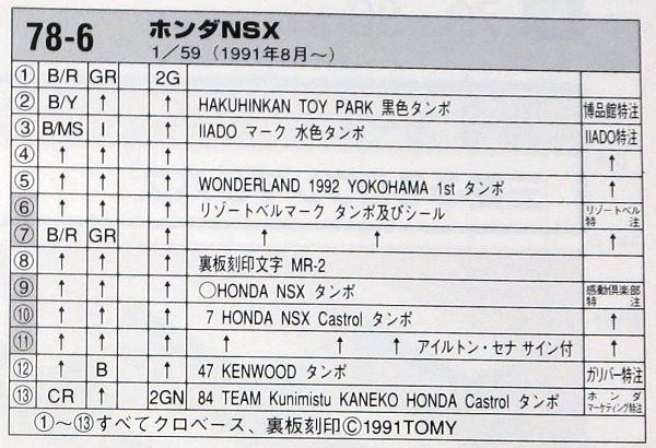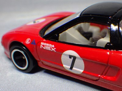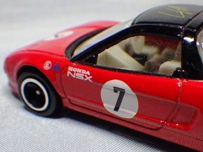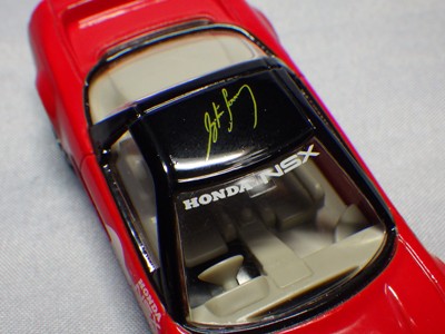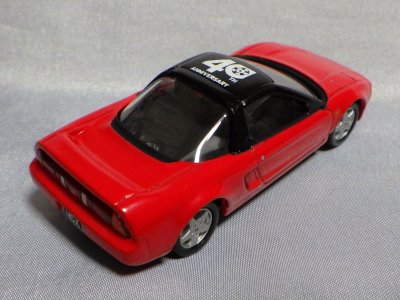 | Hマークは白色タンポ。フロントウインドーに「HONDA NSX」、サイドに「○HONDA NSX」と白色タンポが入る。2005年8月ヤフオクに6-9、10、16の3台セットが出品されたが、落札価格は10万近かった。 最近では2019年7月に出品されたものが76,000円、同年8月に出品されたものが66,500円、同年9月に出品されたものが60,000円で落札され、2020年に入ると5月16日に出品されたものが33,000円で、6月17日に出品されたものが19,050円で落札されている。 |