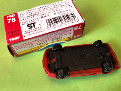 【追加情報・参考画像A】 2022年1月19日にヤフオクに2度目の登場となったリゾートベルシール貼付箱付きモデル。 ロゴがタンポ印刷ではなくシールということもあり、NSX78トミカ初期の二次加工モデルの中では、感動倶楽部トミカやレタックストミカと比べると流通量が少ないのは同じながら人気はそれほどでもないリゾートベルトミカだが、この箱のせいで17,500円まで高騰し落札できなかった。入手された方がショップのシールを自分で貼った可能性も考えていたのだが、複数存在するのであれば、これが公式なのかもしれない。 しかし、2018年11月に出品されたシルバーモデルの方は白箱に小さいリゾートベルのシールが貼られており(21,550円で落札終了)、過去の出品物の多くは、シールなしの通常箱か、箱なしのものが多いので(私の所有品も、レッドモデルはシールなしの通常箱、シルバーモデルはシールなしの白箱)謎である。 おそらく、当時カフェロッジの経営をされていた制作者の方が、トミカに興味のない一般のお客さんにも配布したため、箱が残らなかったのだと思われる。 最近注意喚起させていただいているモデルのようにコピー品が作られないことを願っている。 ちなみにネットで調べてみるとスカイライン2000GTやミニクーパーなどが存在しているようである。 |