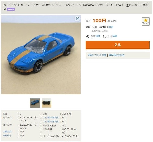 箱なしのリペイント品ということで完全なるワンオフ品と思われる。入札予定はなし。
