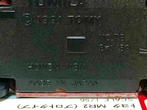 | 2014年12月ヤフオクにて入手。ホンダダイレクトマーケティング(HDC)1998-1999ホンダウェア&グッズカタログ掲載用モデル。オークション出品者が関係者から入手。裏板は市販品の中国製と異なり日本製。黄色灯も若干オレンジが強い。カタログも同時に入手したが、ナンバー部角の塗装のはがれ、フロントガラス部のシールの隙間、サイドのタンポのかすれ具合などからも同一個体と確認できる。 | |||