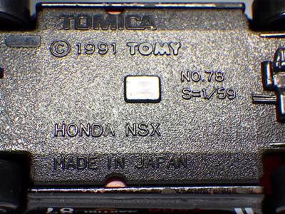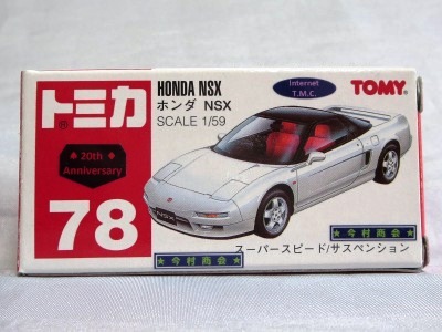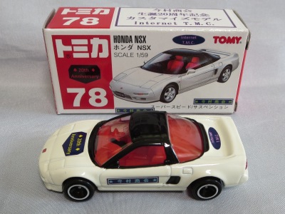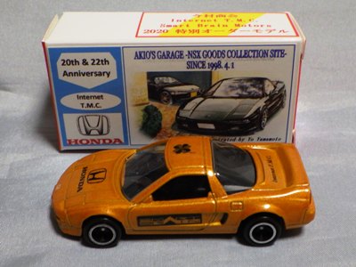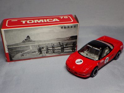2020年8月5日に、いつもお世話になっているミニカーショップ「ドリームボックス」さんとのコラボ企画「NSX生誕30周年記念トミカ」の、先に完成したミニカーのみが届いた。 専用箱は8月26日に到着。レッド専用の箱はなく、メッキバージョンの流用になる。 これらはあくまでクラブやオーナーさん向けに作った商品であり、一般に販売するためのものではない。 ただし、銀メッキベースと43トミカの通常品レッドベース、トミカプレミアムベースの3種のみ、ドリームボックスさんに注文が可能である(在庫がなくなり次第終了)。 この78レッドモデルを含む残りについては、製作者サイドが趣味で少量製作したものなので、注文して購入することはできない。 このベースモデルは1991年8月に発売されたNSXトミカの第1号(実車の発売は1990年9月)。30年近く前のモデルなので現在はヤフオクでも入手困難であるが、個人的にストックしていたものを利用して製作した。 |