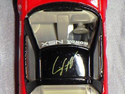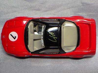コレクションの大先輩で、2021年にコレクターを引退された神奈川のK氏からいただいたもの。 ボンネットに中嶋悟氏のサイン、リアウイングにHONDAのロゴが、それぞれシールで添付されている。 |