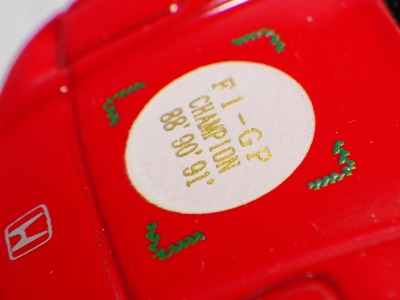 | ボンネットの白色地丸内に「F1GP CHAMPION'88'90'91」の金色タンポ、両ドアの白色地丸内に「PP65」に黒色タンポが入る。さらにルーフ上に某有名ドライバーのサインの黄色タンポが入る。 2020年6月17日に久々にヤフオクに登場し、6月21日に7万円で落札されていた。 |
