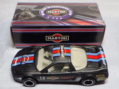 2024年10月27日にヤフオクに初登場。 貴重な日本製の78-6-1トミカがベースなので、かなり古いモデルと思われるが、25年もヤフオクをチェックしてきた私が初めて見たので製作数は相当少ないものと思われる。 マルティニは180年以上の歴史を持つイタリアの酒造メーカー。 車好きな方はよくご存じのように、マルティニは「マルティニ・レーシング」を通じモータースポーツに参加しており、白地に赤と水色と紺のラインが引かれた「マルティニ・ストライプ」のカラーリングが有名。 ポルシェへのスポンサードのイメージが特に強いが、2006年より3年契約でフェラーリF1をスポンサード。 しかし、なぜか契約を更新せず、2014年にはウィリアムズF1と契約したが、この関係も4年間で終了している。 |