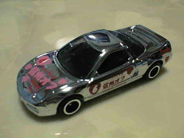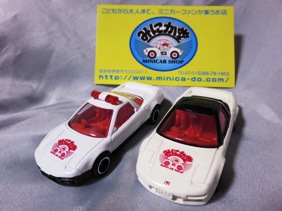 | ミニカー専門店IIADOの新店舗開店記念品。ボンネットに水色のロゴタンポが入る。専用箱あり。 1992年6月発行の「K.T.M.C.(関西トミカマニアズクラブ)」会報No.5に「IIADOの移転記念のNS-Xの銀色が今月出て来るようです」という一文があるので、その頃に登場した商品であることがうかがえる。ボンネットにタンポがあるタイプのないタイプの関係は不明。 |