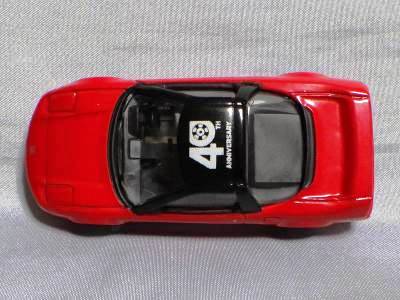 1998年11月発売。1997年12月に発売され、レースゲームの定番となった「グランツーリスモ」に登場する車をモデル化したもの。スープラGT、S13シルビア、ランエボW、R33GT-R、ロードスターとの6台セット。 オレンジのカラーは、1997年2月の実車の最初のマイナーチェンジで新規にカスタムオーダー専用カラーとして設定された4色のうち、このとき追加されたグレード「タイプS」の専用カラーでもあったイモラオレンジパールをイメージしたもの。 ちなみに、1997年の最初のマイチェンで排気量が3.2LにアップしたNA2が追加されたものをU型、2001年のマイチェンで固定式ヘッドライトに変更されたものをV型と呼ぶ。固定式ヘッドライト=NA2ではなく、リトラのNA2も存在するということ。ATについては、U型も、V型も3.0LのままNA1で型式は変わっていない。 |
