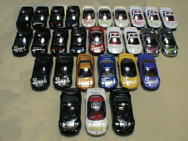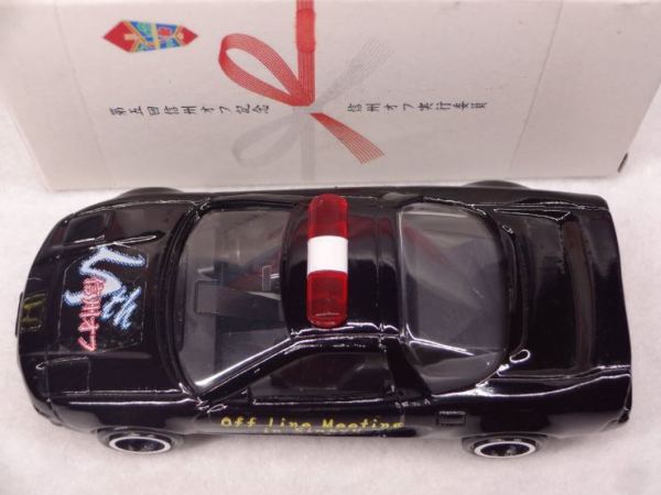 バトルオオサワ氏主催「信州オフ」が特注し、アイアイアドカンパニーを通じてトミーの中国工場で製作されたブラックパトカー仕様が、2001年1月に今村商会より第1弾として発売されました(画像:最後列左から1台目/1台¥700/製作台数1,500台)。付属のシールによって、プロトタイプ、レギュラータイプ、りさるあタイプ、警視庁仕様と4種が作成可能ですが、初期シールは40名の限定。20名限定の後期シールを入手するも、これには初期シールに存在した「りさるあ」シールはなし。ちなみにこの後期シールは第2弾発売時にもオマケでいただきました。3月にはボンネットにタンポ印刷を施したものが3種発売されました(画像:最後列左から2〜4台目/1台¥1,000/3台セット¥2,700/製作台数各500台)。 ★信州オフ第2弾★(全21種) 今村商会が2001年5月末より企画を始めた第2弾は、ノーマルホワイト、中国製パトカーにそれぞれ3種のタンポ印刷を施すというもの。もともとは第6回信州オフ会の記念品として少数生産を前提に企画されたものですが、一般の信州オフトミカファンからの受注もネット上で受け付け、結局6種合計1,300台が製作され、10月に販売されました(画像:最後列左から5〜10台目/1台¥1,000/製作台数ノーマルホワイト・ピンクタンポ&グリーンタンポの2種は各250台・ノーマルホワイト・銀タンポと中国製パトカー・ピンクタンポ&グリーンタンポ&銀タンポの4種は各200台で追加販売時の価格はこの4種のみ1台¥1,200に)。 さらに同時に第1弾のブラックパトカーに第6回信州オフ会を記念した銀タンポを施したモデルを80台製作。50台は関係者配付用で、残り30台が1人1台限定で、信州オフトミカファンに販売されました(画像:3列目左から1台目/1台¥1,000)。第1弾のボンネットタンポ仕様3種にも、オフ会参加記念品として同じようにタンポを追加したものが製作され、特定のファンに1人1台限定で販売されました(画像:3列目左から2〜4台目/1台¥1,000)。 この第2弾でもっともコレクターの度肝を抜いたのが、信州オフトミカファンから絶版品も含めたNSXトミカを預かって、第6回信州オフ会記念タンポを施した上で返送するというもの。ベース車両となったのは@絶版通常品・赤、A絶版通常品・日本製パトカー、Bチュッパチャップスパトカー、C非売品銀メッキ、Dホンダスポーツカーセット・紺、Eアミューズメント・緑、Fグランツーリスモセット・オレンジ、G疾走ポリスカーセット・青、H首都高バトル非売品・黄、Iホンダオリジナルミニチュアカーセット・紫の計10種(Cにはタンポが2種あるため、実際のバリエーション数は11種/画像:3列目左から5〜9台目、2列目全て/タンポ手数料1台¥400、2台目以降は1台¥300)。 ★信州オフ関係その他★(全3種) 信州オフと親交の深い名古屋の一ツ木オフ会の中心メンバー・TOMO-Q氏の製作されたキッズランドバージョンは非売品(画像最前列左から1〜2台目)。信州オフメンバーで、信州オフ特注ブラックパトカーの箱もデザインされたzook氏のデザインしたモデルです。第5回信州オフの参加記念モデルも非売品とのこと(画像最前列右端)。いずれも今村商会の今村氏のご厚意で譲っていただいたものです。なお、この3種はタンポ印刷ではなくシール貼付品です。 |