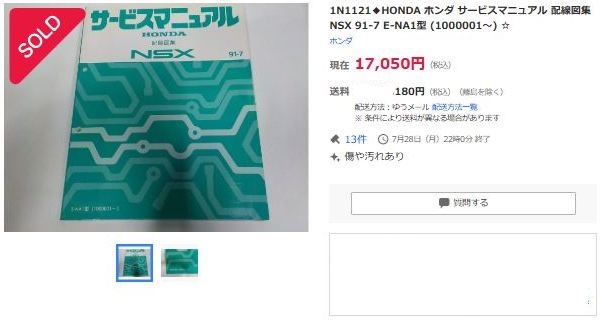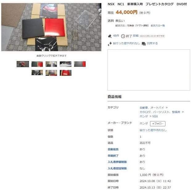 アプローチパンフレットと共に用意された正式なカタログで、ディーラーもアプローチパンフレットほどには気軽にばらまかなかったため、ヤフオクではアプローチパンフレットより高い価格で出品されていた。 アプローチパンフレットとセットで出品されることがほとんどで、最初の出品は2万円を超える落札価格が付いたが、2016年11月下旬には送料込1,180円に価格が落ち着いた(同じ出品者が大量に繰り返し出品しており、ホンダ関係者なら問題なのでは?)。2,000万円オーバーの車のカタログにしては質素な印象だが、成約すると記念にブルーレイディスクとTSM製1/18ミニカーとセットで豪華本が進呈される。 この豪華本は2017年6月と8月にヤフオクに出品されるが高すぎて落札できず。その後も時々出品されている。 |