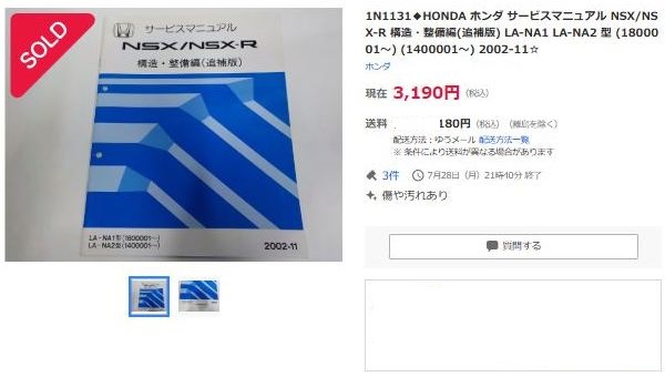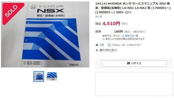 2019年12月3日にヤフオクに初登場したNSX2020モデルカタログ。 |