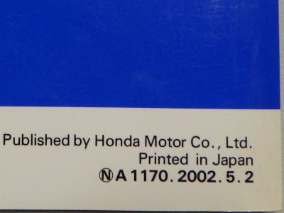 | 00年12月。01年3月HPから注文。P50のアレンジ変更。 | 01年4月。P50のアレンジ変更。裏表紙のホンダマークが表紙へ移動。 | ||
