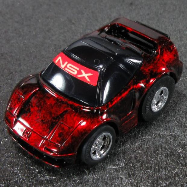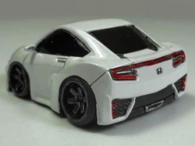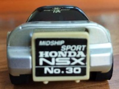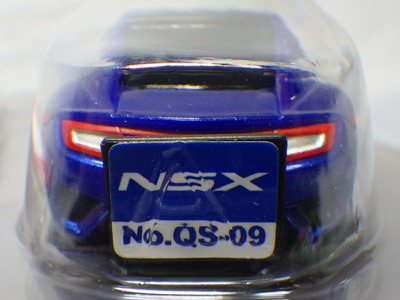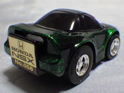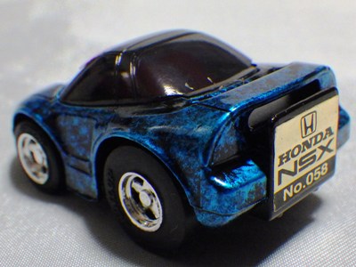 | 2004年5月ヤフオクにて購入。チョロQのコピー品というには少々小さく全長35mm。 それ以前にNSXと呼ぶのも厳しい形状。裏板に「MADE IN CHINA」の刻印。 |